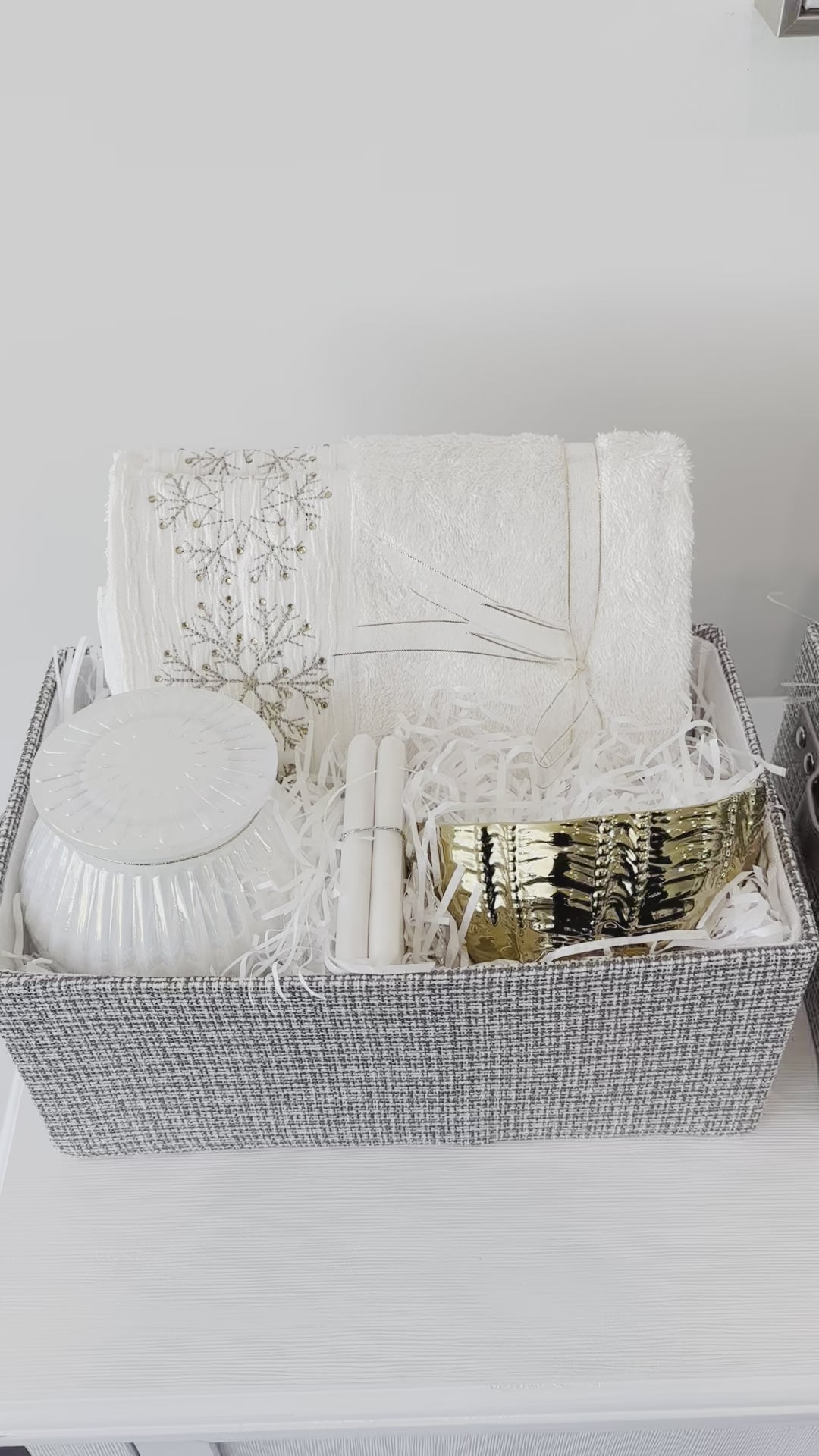 All is Bright gift collection is elegant, with gold accented essential items for a recipient's home to get them in the holiday spirit. This is the perfect gift to make someone feel merry and bright during the holidays.